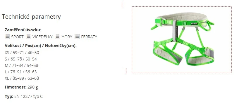 Ocún Neon – sportovní sedák o váze 270 g s jednou přezkou. Přezka je samosvorná, díky tomu se sedák velmi pohodlně utahuje. Je vhodný pro sportovní lezení těžkých cest.