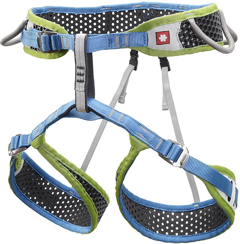 Ocún WeBee 3 - univerzální horolezecký sedák s možností nastavit nohavičky. Má mírně rozšířený pás pro pohodlné zachycení pádů a dobré sezení na štandu. Lemovky jsou nosné, proto tomu dobře rozkládá síly při pádu.