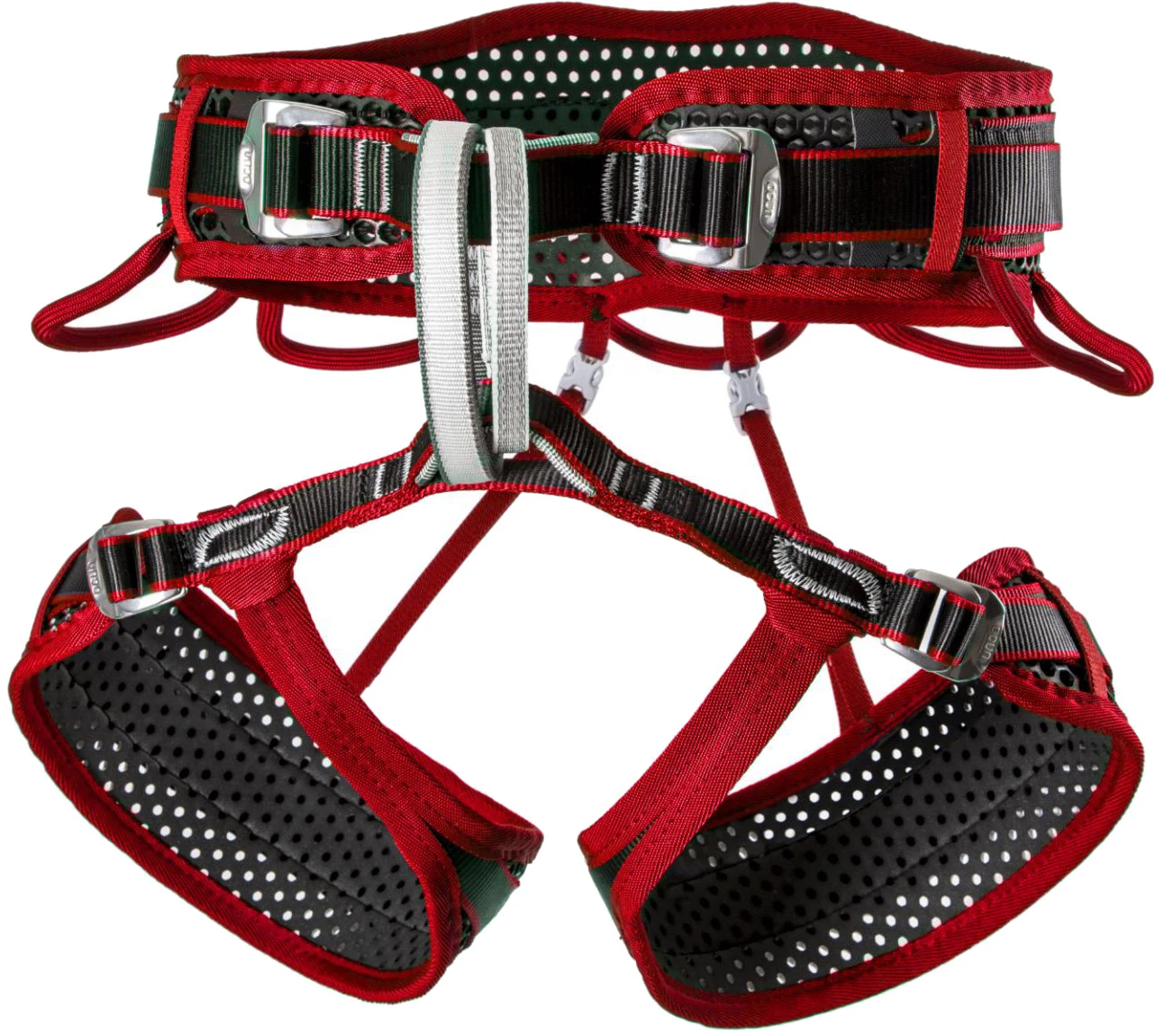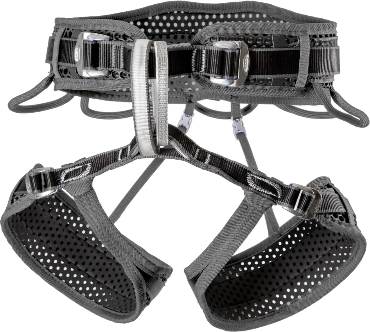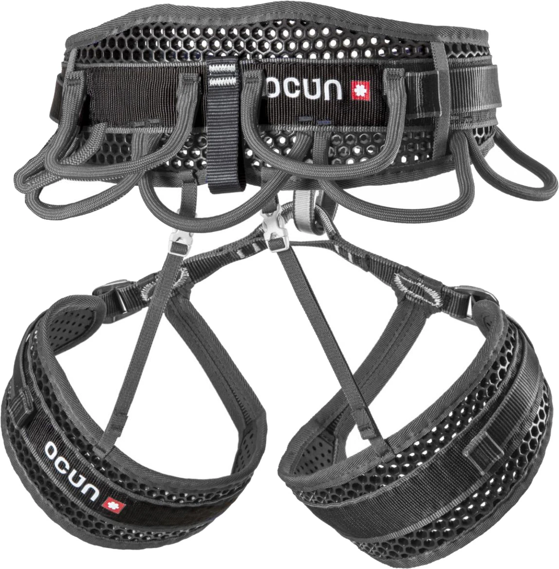 Ocún Webee Bigwall – plně nastavitelný horolezecký úvazek, se 4 samosvornými přezkami. Nastavitelné nohavičky, rozšířená záda, která jsou výhodná pro delší sezení na štandech.., dvojité jistící oko, oko na haul bag, 7 nosičů materiálu, 2 caritool sloty.
