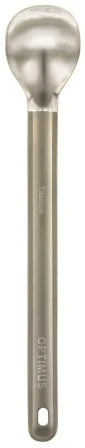 Optimus Titanium long Spoon - cestovní lžíce s dlouhou rukojetí. Hodí se pro přípravu jídla v pytlíku - expedičního lyofylizovaného jídla, kde dosáhnete až na dno aniž si upatláte ruce. Je zajímavá extrémně nízkou hmotností.