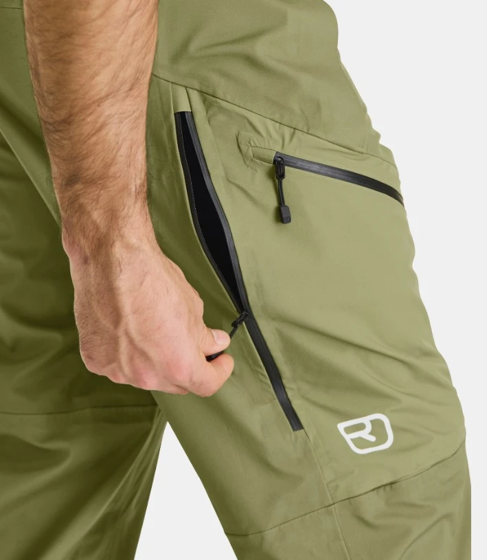 Ortovox 3L Guardian Shell Pants – jsou pánské nepromokavé kalhoty určené pro sjezdové lyžování nebo freeride. Nejsou zateplené, jedná se pouze o membránové kalhoty, které jsou zajímavé voděodolností a hlavně oproti zatepleným lyžařským kalhotách prodyšností.
