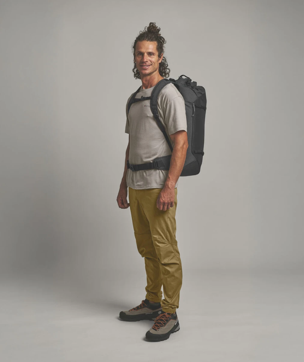 Materiály odolné proti oděru: Batoh je zkonstruován z kombinace Polyamidu 420D a 420D Cordura (přední část). Tyto tkaniny jsou navrženy tak, aby vydržely drsné zacházení na skále, v sutích i při transportu těžkého lezeckého materiálu. Pevnost je zvýšená RIPSTOP zpracováním a vodoodpudivou DWR úpravou.