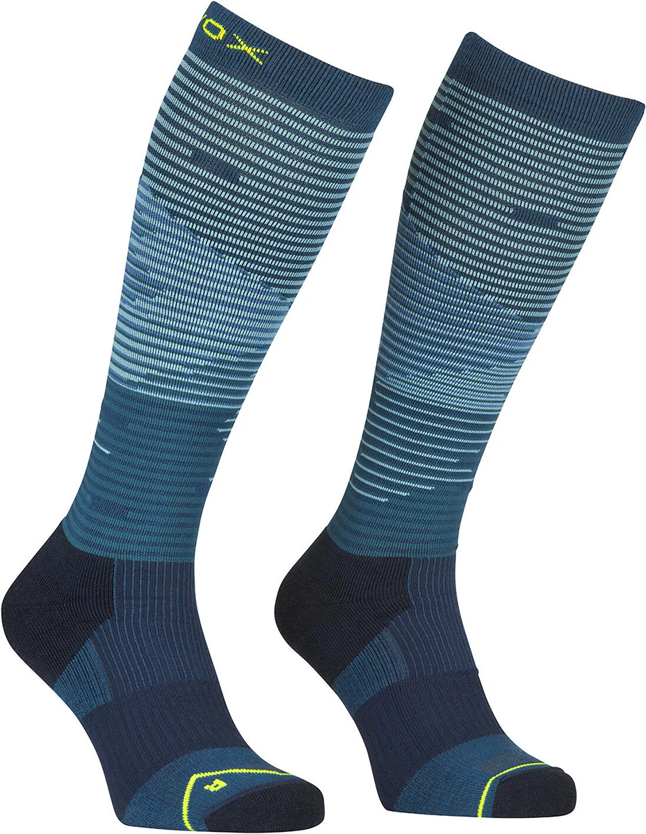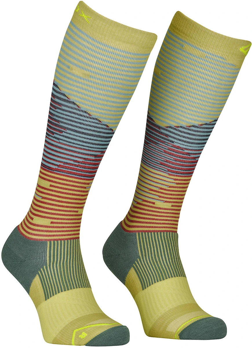 Ortovox All Mountain Long Socks M: funkční pánské podkolenky. Jsou teplé, mají vyztuženou patu a špičku, bezešvé pletení, hodí se pro náročné zimní aktivity. Ponožky jsou ergonomicky tvarované, nesjíždí a velmi dobře drží na noze. Hodí se pro náročné túry v chladném počasí.