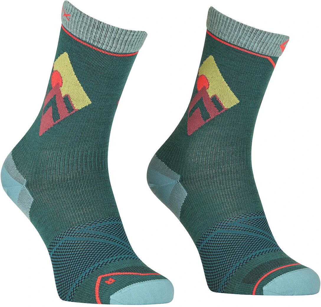 Ortovox Alpine Light Compression Mid Socks W: pánské lehké kompresní ponožky, kompresní účinek je rovnoměrně rozložen od kotníku po lýtko. Dochází tak k správnému prokrvení lýtka a oddálení únavy. Ponožky jsou vyrobené ze směsi vlny Merino, která má výborné termoregulační vlastnosti, odolává zápachu a syntetiky, která prodlouží životnost ponožek. Ponožky skvěle drží, mají ploché švy aby se zabránilo tvorbě puchýřů. Hodí se pro náročné horské letní túry.