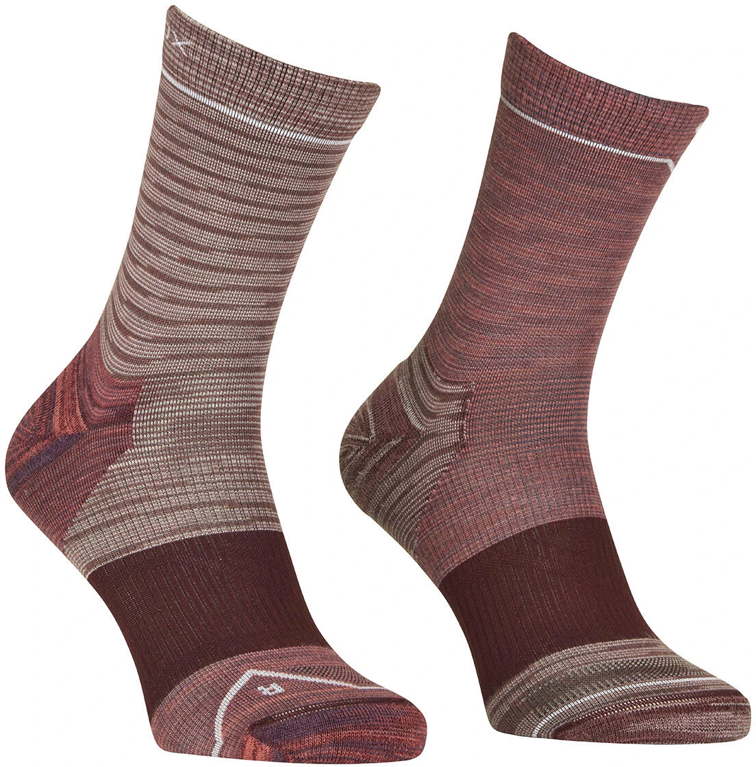 Ortovox Alpine Mid Socks W: vysoké funkční dámské ponožky s vyztuženou patou a špičkou, jsou ergonomicky tvarované, díky tomu nesjíždí a dobře drží na noze. Ponožky jsou vyrobené ze směsi Merino vlny a syntetiky. Vlna Merino pohlcuje vlhkost, hřeje i za mokra, má antibakteriální vlastnosti, odolává zápachu. Polyamidové vlákna zase zvyšují odolnost a životnost ponožek. Ponožky se hodí na náročné letní horské túry.