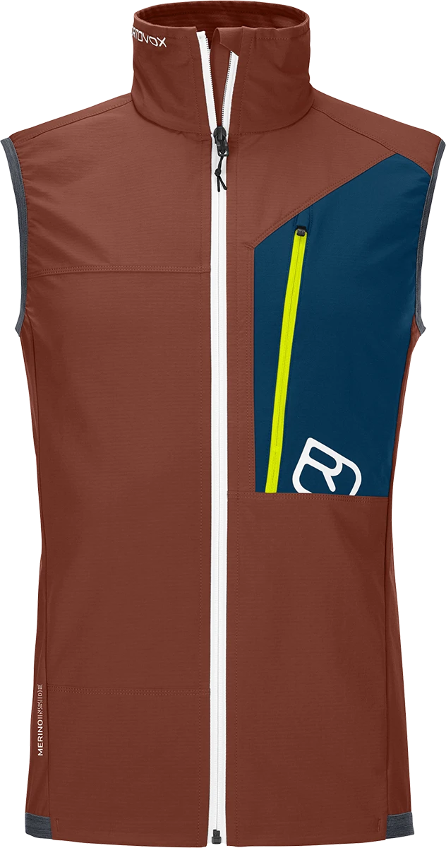 Ortovox Berrino Vest M: je pružná a velmi prodyšná pánská softshellová vesta. Hodí se pro sporty, kde se hodně potíte a vůbec pro sporty s vyšší intenzitou. Je relativně dost tenká, ale dobře odolává větru a díky DWR úpravě i drobnému dešti.