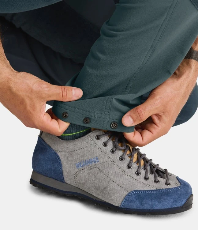 Mají anatomicky tvarovanou oblast kolen a rozkroku. Vyšší střih elastického pásu znamená, že oblast zad zůstane vždy dobře chráněná, a to i pod lezeckým úvazkem. Skrytá kapsa na zip na stehně je umístěna tak, aby byla vždy snadno přístupná i s lezeckým úvazkem.