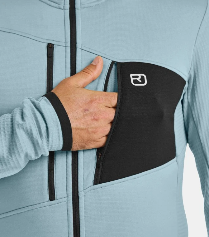 Ortovox Fleece Grid Jacket M: je fleesová mikina, která se hodí pro aktivity, kde potřebujete prodyšnost a tepelnou izolaci. Pánská fleesová bunda Ortovox Fleece Grid Jacket M se hodí pro lezení, na ferraty, VHT nebo skialpy.