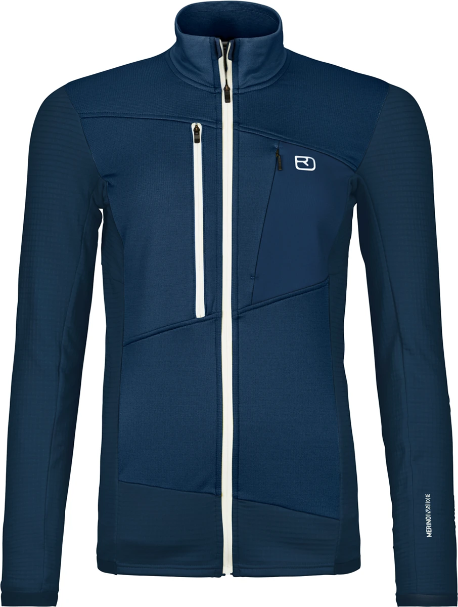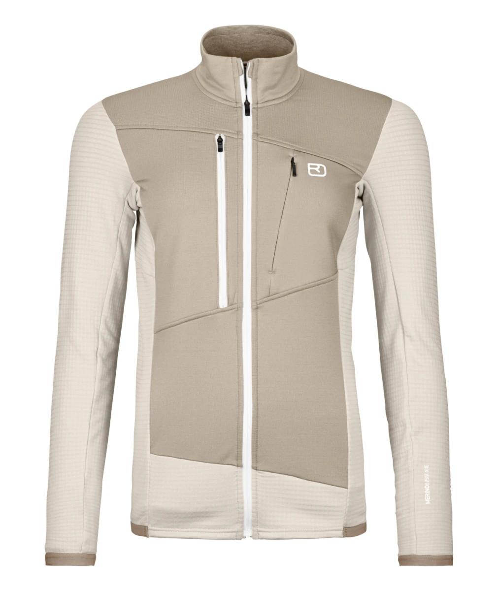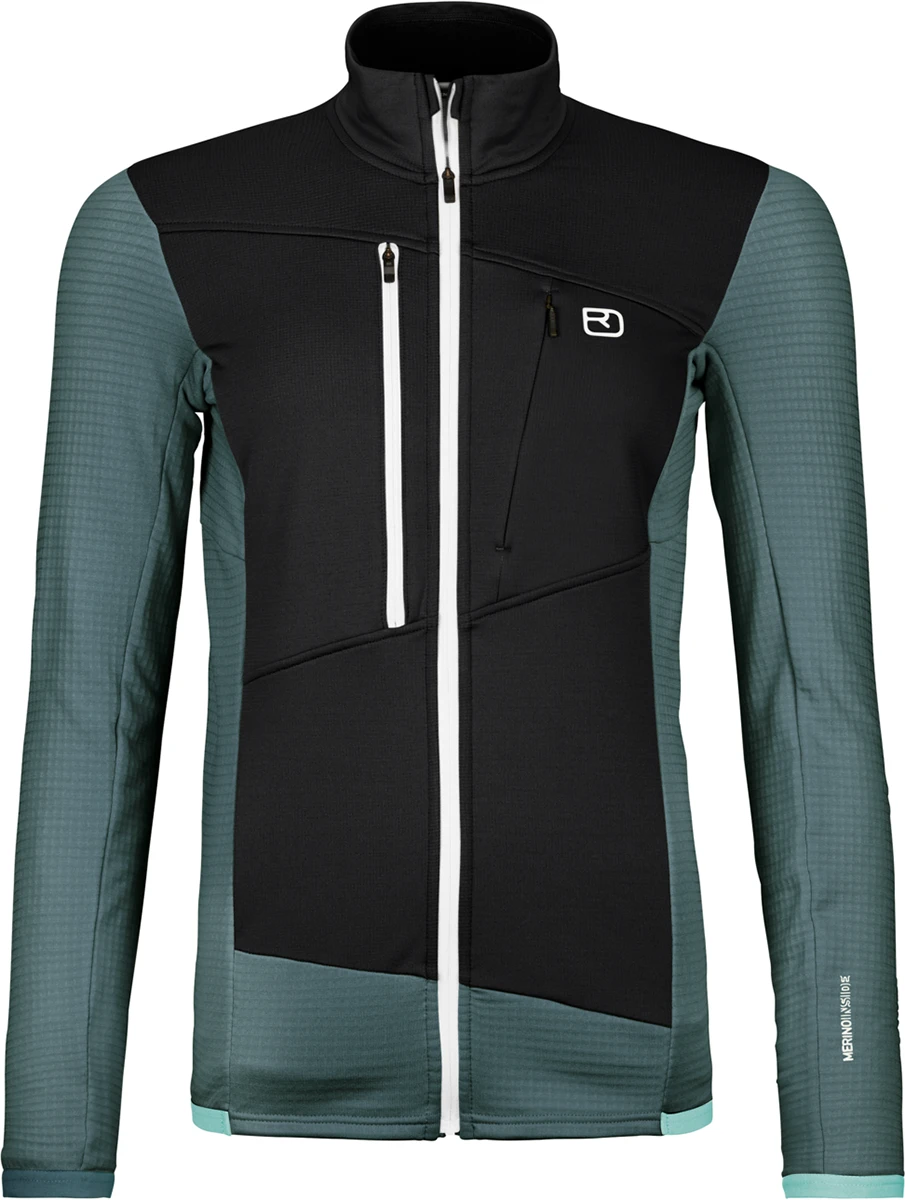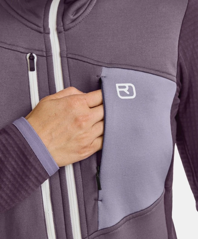 Ortovox Fleece Grid Jacket W: je designově pěkně vyvedená dámská fleesová mikina, která je určená pro aktivity s vysokou intenzitou, hodně se potíte a potřebujete vysokou prodyšnost. Dámská fleesová bunda Ortovox Fleece Grid Jacket W je zajímavá pro lezení ferrat, lezení, turistiku nebo skialpinismus.