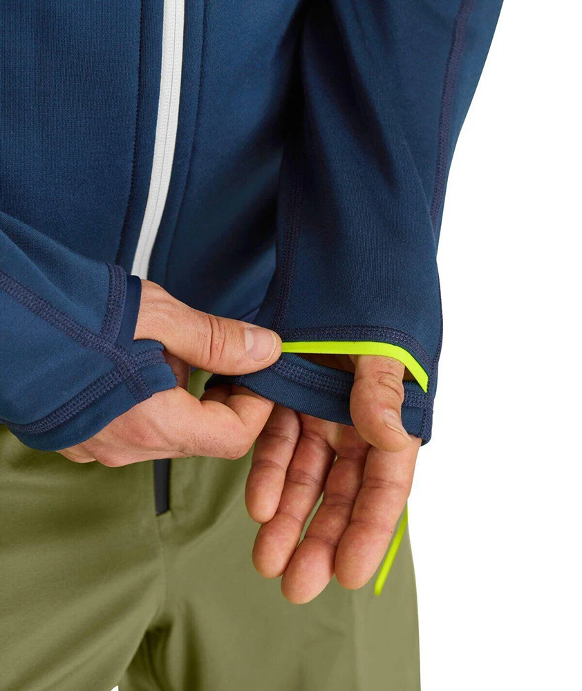 Ortovox Fleece Hoody M: je designově podařená a výrazná pánská fleece bunda s kapucí vhodná pro podzimní nošení jako vrchní vrstva nebo ve větší zimě jako střední, zateplovací vrstva. Je vyrobena z kombinace polyesteru a merino vlny. Tento materiál je vysoce odolný proti mechanickému namáhání, dobře odvádí pot a zároveň výborně hřeje. Také díky merino vlně nezapáchá ani při nošení po několik dní.