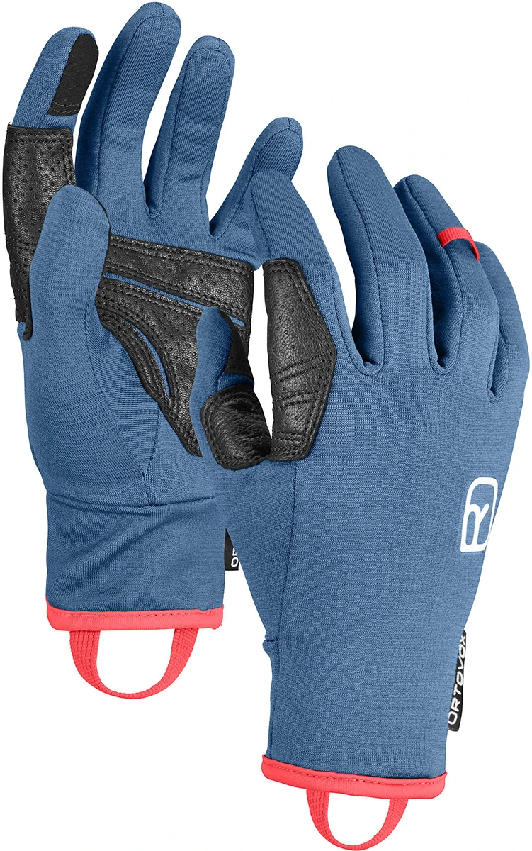 Ortovox Fleece Light Glove W – dámské fleece rukavice s kůží na dlani a prstem pro ovládání obrazovky mobilu. Jsou z materiálu s podílem merino vlny. Rukavice jsou prodyšné, měkké a velmi pohodlné. Mají praktické poutko pro rychlé nasazení. Rukavice jsou vhodné na lyžařské tůry i jako zateplovačky.