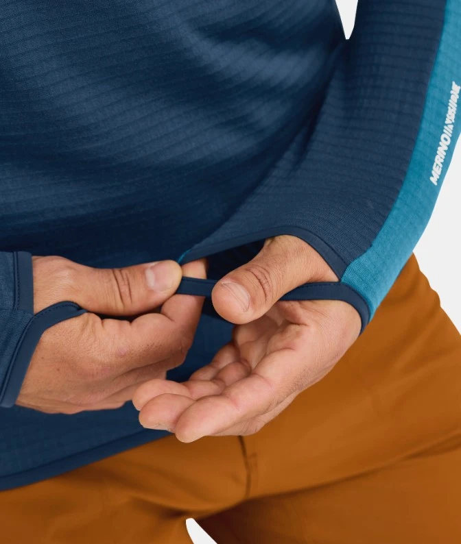Ergonomický střih a otvory na palce na koncích rukávů.