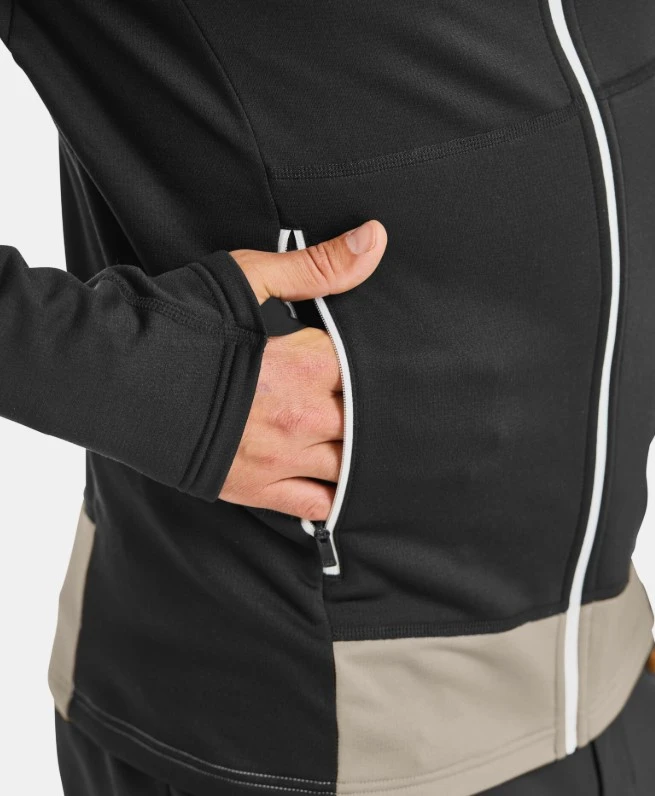 Fleece má waflovou konstrukci, která udržuje ve flísu dostatek vzduchu a proto poskytuje lepší izolaci při nižší váze. Na spodní straně je broušený pro příjemnost na omak.