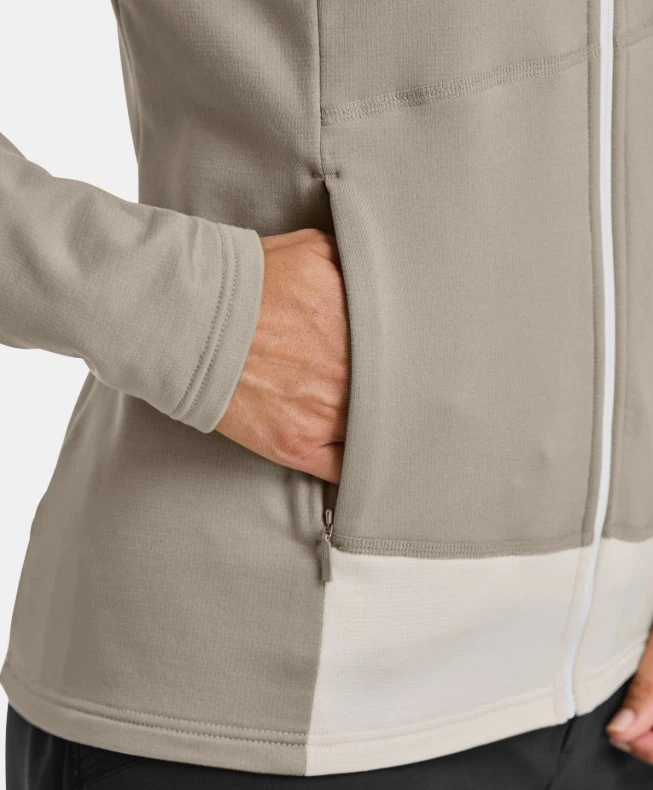 Fleece má waflovou konstrukci, která udržuje ve flísu dostatek vzduchu a proto poskytuje lepší izolaci při nižší váze. Na spodní straně je broušený pro příjemnost na omak.