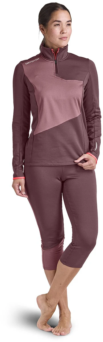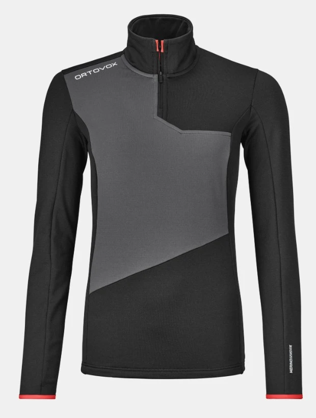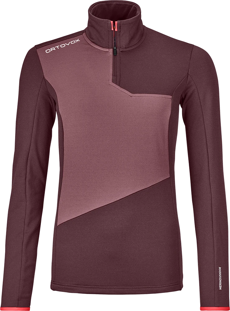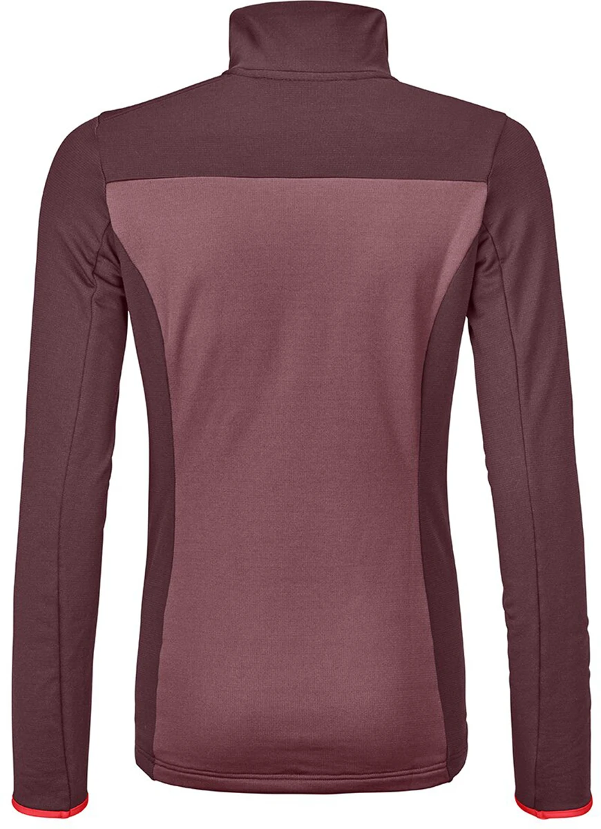 Ortovox Fleece Light Zip Neck W: je tenká a lehká flísová dámská mikina s krátkým zipem ke krku s gramáží 205 g/m. Je vyrobena z kombinace polyesteru a merino vlny, díky merino vlně dobře hřeje a zároveň díky polyesteru odvádí pot.