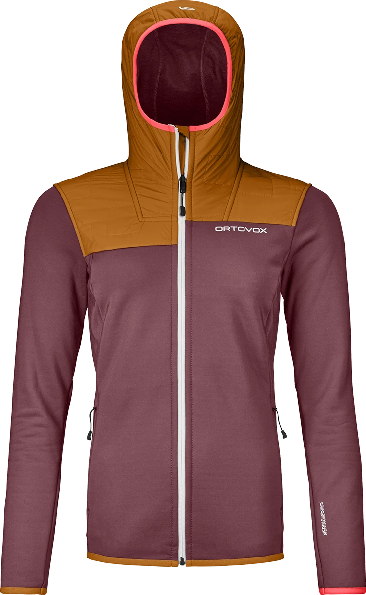 Ortovox Fleece Plus Hoody W: teplá funkční dámská mikina s kapucí. V oblasti ramen a kapuce je mikina z elastického a větru odolného materiálu TEC STRETCH. Na vnitřní straně je měkký merino fleec, který přirozeně reguluje tělesnou teplotu a je velmi příjemný na tělo.