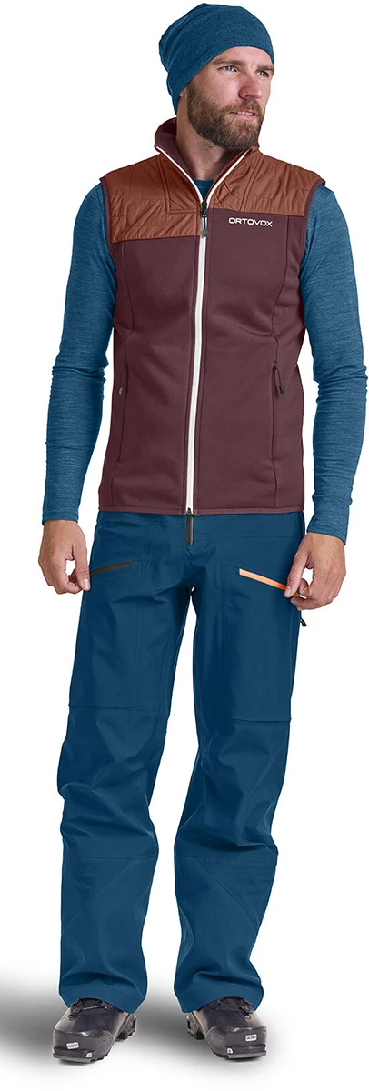 Ortovox Fleece Plus Vest M: teplá pánská funkční vesta, hodí se na různé sportovní aktivity i v těch nejmrazivějších dnech. V oblastí ramen je vesta zesílena odolným materiálem Tec Stretch. Uvnitř je měkký merino fleece, který přirozeně reguluje tělesnou teplotu. Vesta je pružná a prodyšná, je velmi pohodlná.