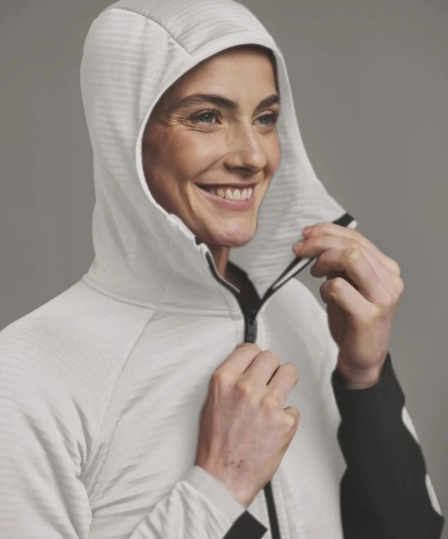 Unikátní žebrovaná struktura (MERINO FLEECE RIB): Vnitřní kanálková struktura s obsahem merino vlny zajišťuje efektivní ventilaci a vysokou úroveň izolace. Materiál je vysoce prodyšný, pružný a skvěle reguluje vlhkost.