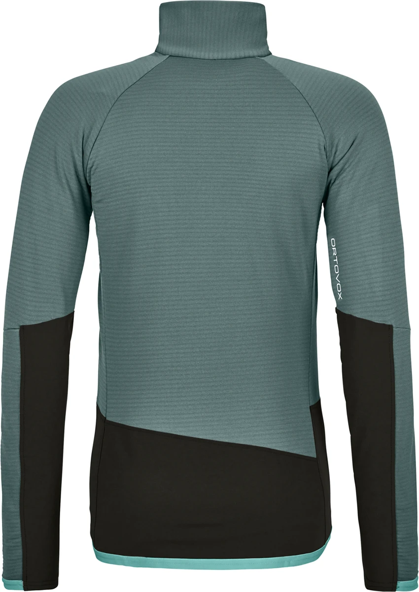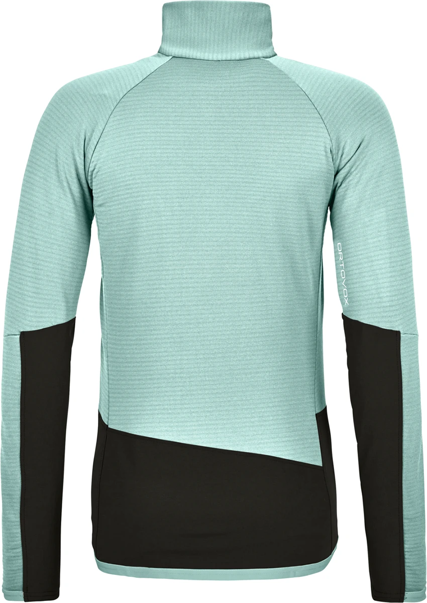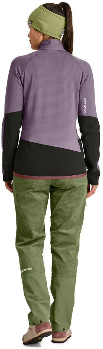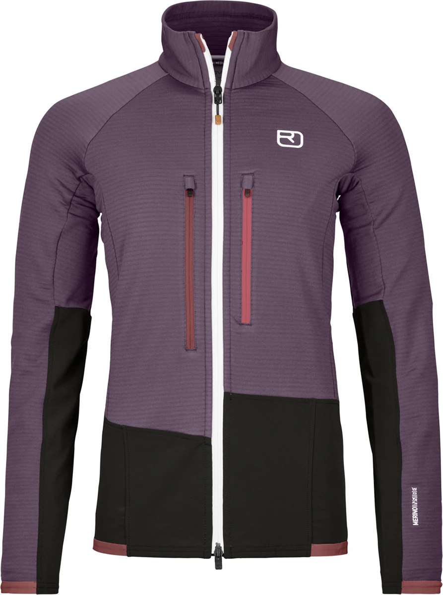 Ortovox Fleece Rib Jacket W: dámská mikina speciálně navržena pro horolezce. Tam kde je mikina při lezení nejvíc vystavena oděru od lezeckého úvazku, materiálu a skály (břicho, boky, spodek rukávů) je vyrobená z materiálu Merino Shield Tec, který je velmi odolný.