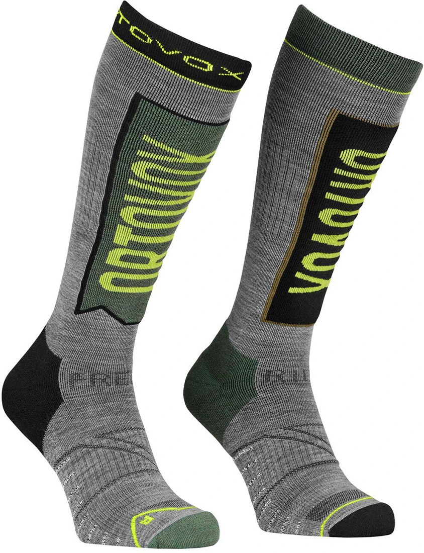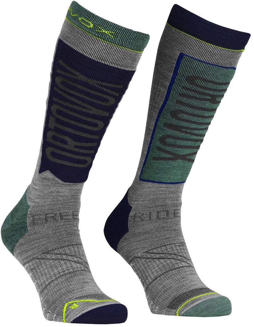 Ortovox Free Ride Long Socks M – vlněné pánské podkolenky s jemnou kompresí v oblasti lýtka. Hodí se na freeeride, skialpinismus či dlouhé lyžovačky. Ponožky jsou teplé, mají pružnou manžetu, jsou ergonomicky tvarované pro pravou a levou nohu, díky tomu velmi dobře sedí na noze a nesjíždějí. Ploché švy omezí tvorbu puchýřů.