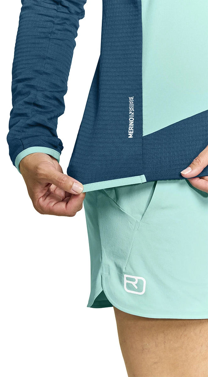 Ortovox Ladiz Hybrid Jacket W: je hybridní dámská bunda, která je vyrobena z prodyšného a rychleschnoucího materiálu Merino Fleece Light Grid. Bunda je velmi lehká, prodyšná a dobře sbalitelná.
