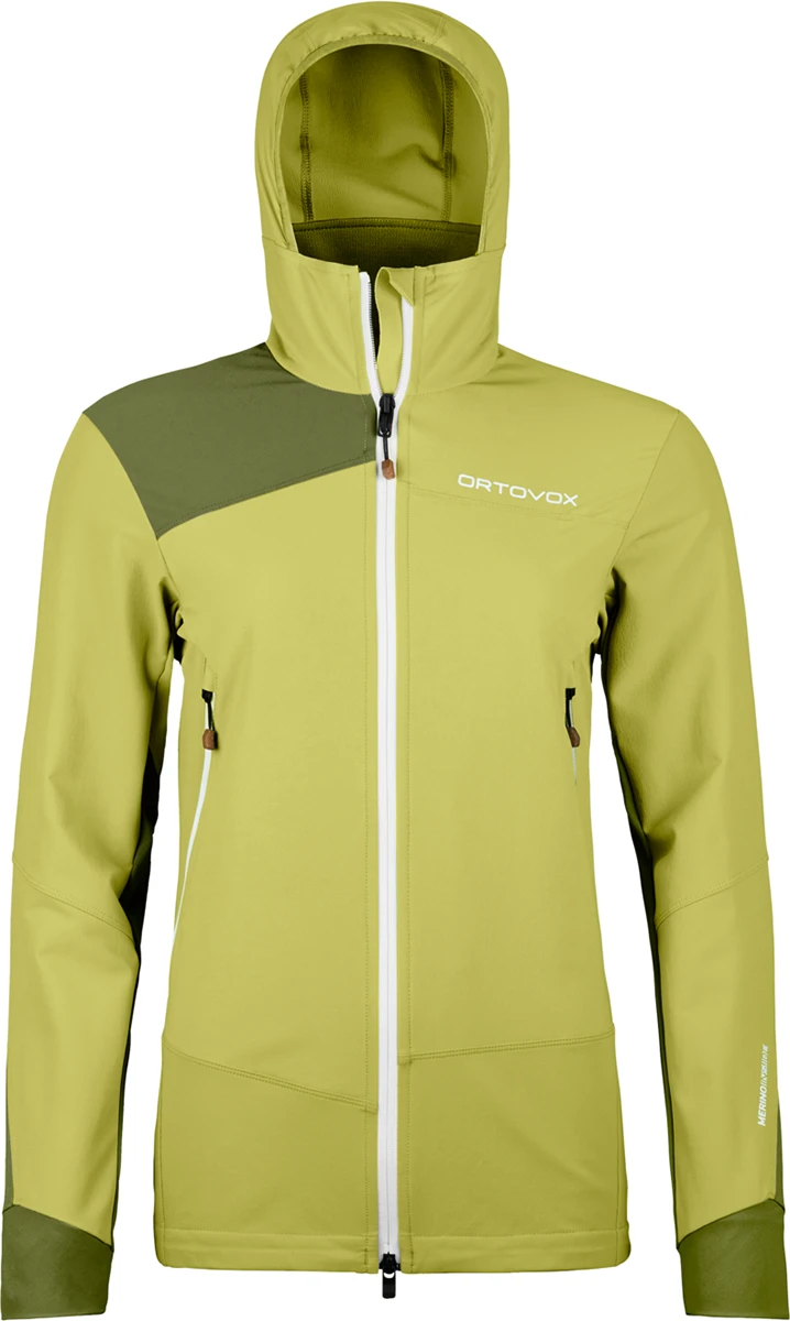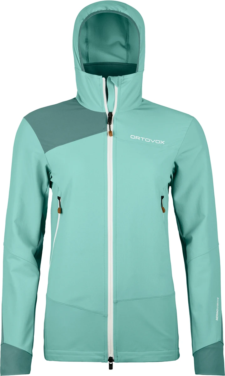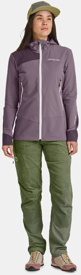Dámská softshell bunda Ortovox Pala Hooded Jacket W se hodí pro lezení ferrat, turistiku, cestování.