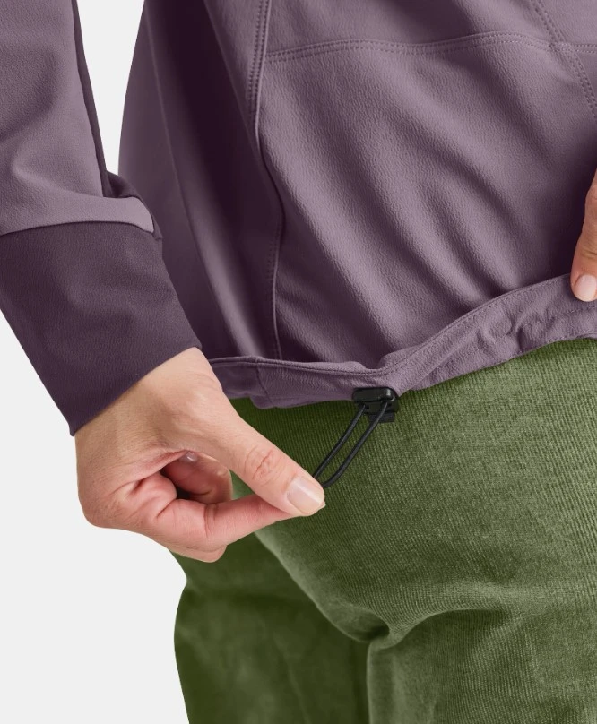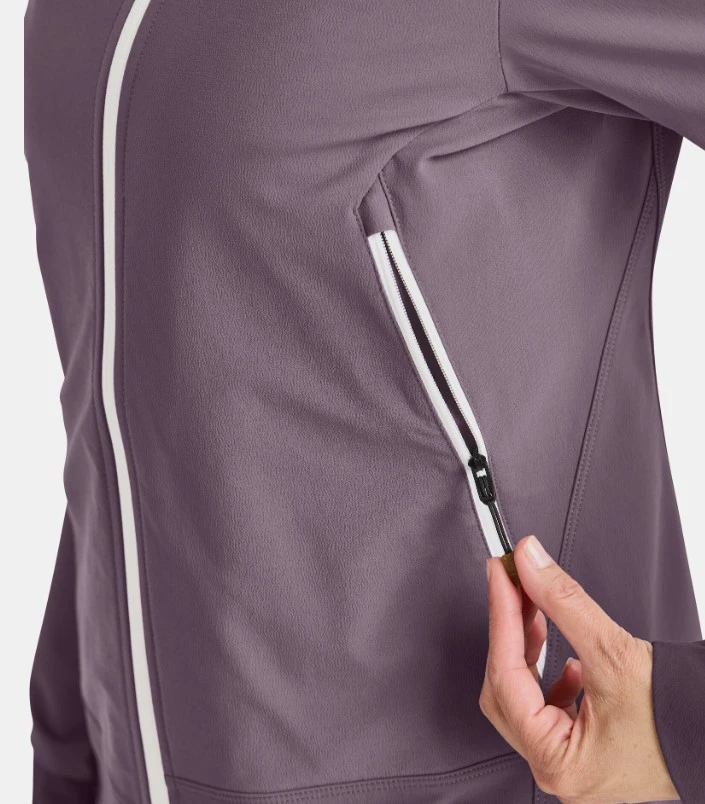 Má sportovní střih, rukávy jsou ergonomicky tvarované a prodloužené, hodí se i pro lezení. Elastická kapuce se vejde pod helmu a pružný lem. Bunda má dvě prostorné kapsy umístěné výše, aby fungovaly s bederním pásem batohu nebo sedákem. Integrovaná kapsa na mobilní telefon.