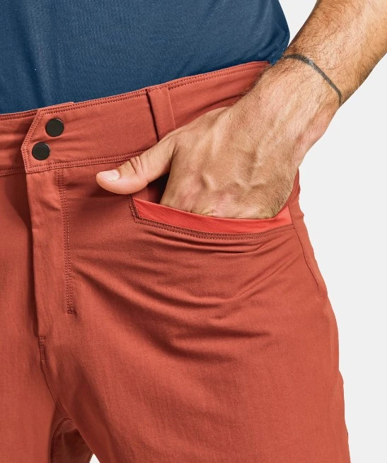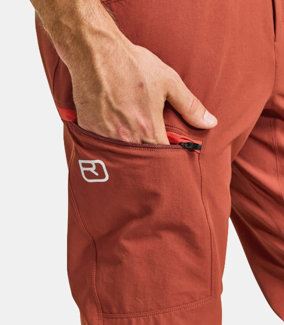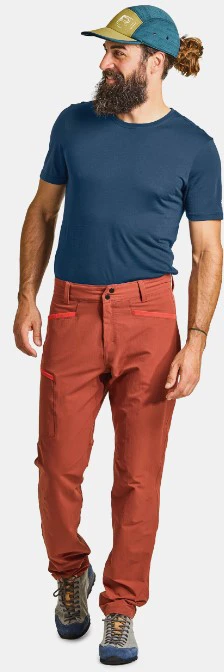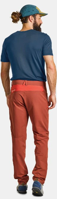 Ortovox Pelmo Pants M: jsou designově hodně výrazné pánské sportovní kalhoty určené pro outdoorové sporty jako je sportovní lezení, turistika, lezení ferrat nebo jiné podobné aktivity, kde potřebujete flexibilitu pohybu a tomu odpovídající střihy a odolnost, protože vaše outdoorové kalhoty trpí např. kontaktem se skálou.