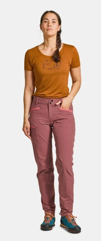 Ortovox Pelmo Pants W: jsou designově hodně výrazné dámské sportovní kalhoty určené pro outdoorové sporty jako je sportovní lezení, turistika, lezení ferrat nebo jiné podobné aktivity, kde potřebujete flexibilitu pohybu a tomu odpovídající střihy a odolnost, protože vaše outdoorové kalhoty trpí např. kontaktem se skálou.