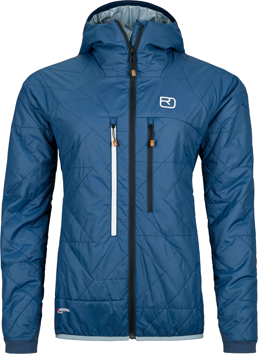 Ortovox Piz Boé Jacket W: dámská technická zimní bunda určená pro použití jako zateplovačka pod membránovou bundu i jako svrchní oděv. Zateplení je vyrobeno ze švýcarské vlny, která má špičkové izolační vlastnosti a vysokou prodyšnost. Dokáže absorbovat vlhkost a přesto hřát. Je použita gramáž izolační vrstvy 60 g/m2 - to je ideál do teplot cca -5 až -7°C.
