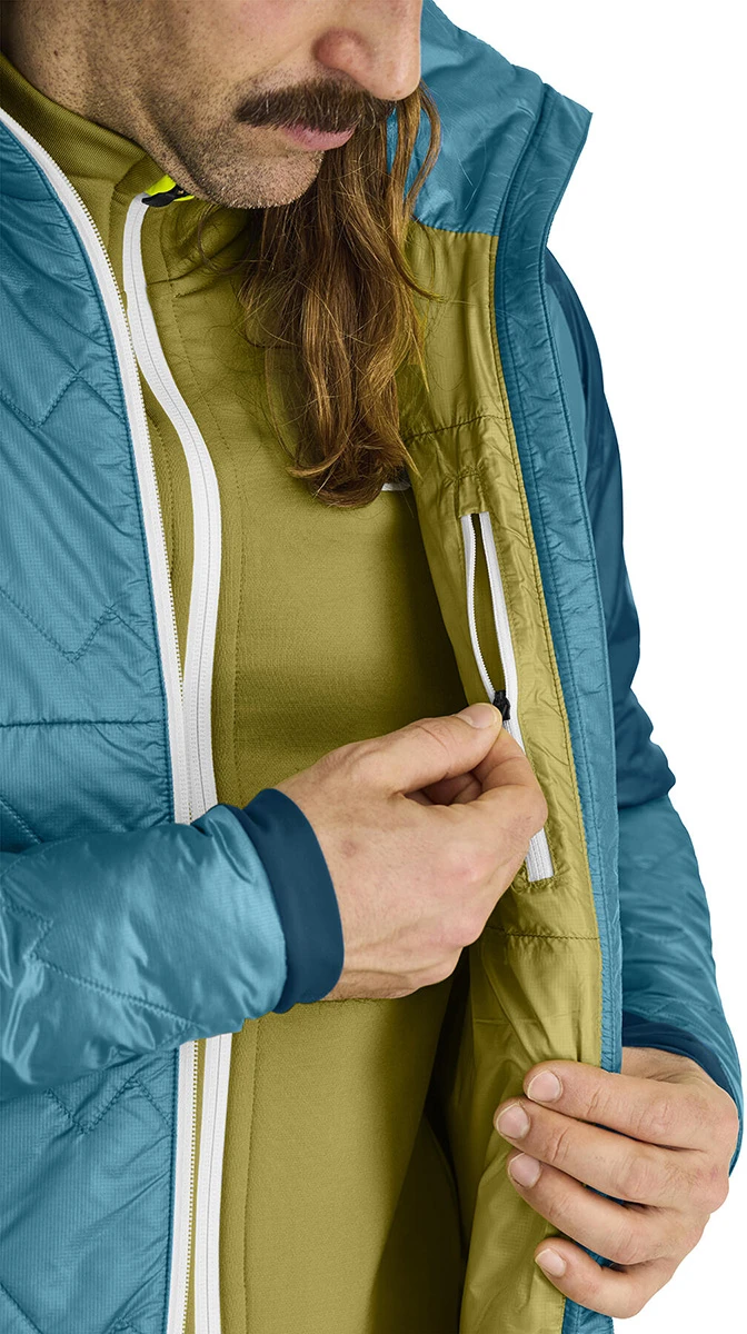 Ortovox Piz Vial Jacket M: je pánská zateplená bunda. Zateplení je vyrobeno ze švýcarské vlny, která má špičkové izolační vlastnosti a vysokou prodyšnost. Dokáže absorbovat vlhkost a přesto hřát. Je použita gramáž izolační vrstvy 90 g/m2. Vnější materiál Pertex® Quantum Diamond Fuse je odolný proti větru a vodě.