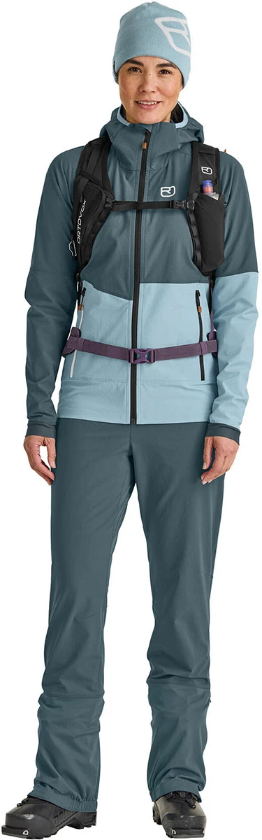 Ortovox Punta Berrino Hooded Jacket W: softshelová dámská odolná bunda pro všestranné využití. Hodí se na turistiku, skialpinismus, lezení, běžky a jiné podobné aktivity. Je lehká, váží pouhých 324 g, je velmi prodyšná a poskytuje ochranu před větrem a drobným deštěm (má DWR úpravu). Kapuce je tvarovaná, skvěle sedí.