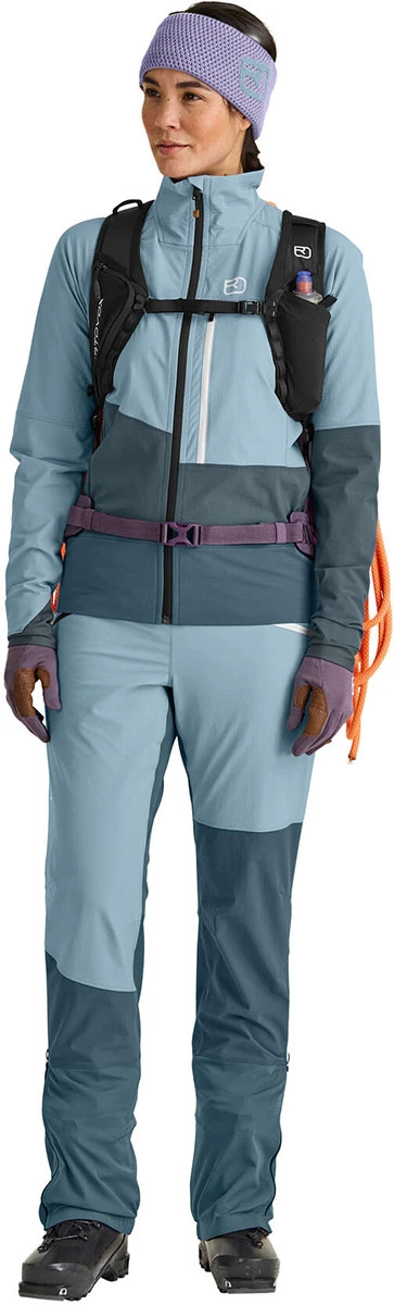 Ortovox Punta Berrino Jacket W: softshelová dámská odolná bunda pro všestranné využití. Hodí se na turistiku, skialpinismus, lezení, běžky a jiné podobné aktivity. Je lehká, váží pouhých 275 g, je velmi prodyšná a poskytuje ochranu před větrem a drobným deštěm (má DWR úpravu). Bunda má dvouvrstvý límec, který výborně chrání před mrazivým větrem.