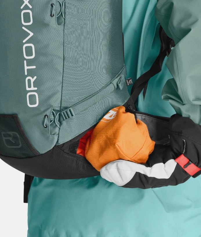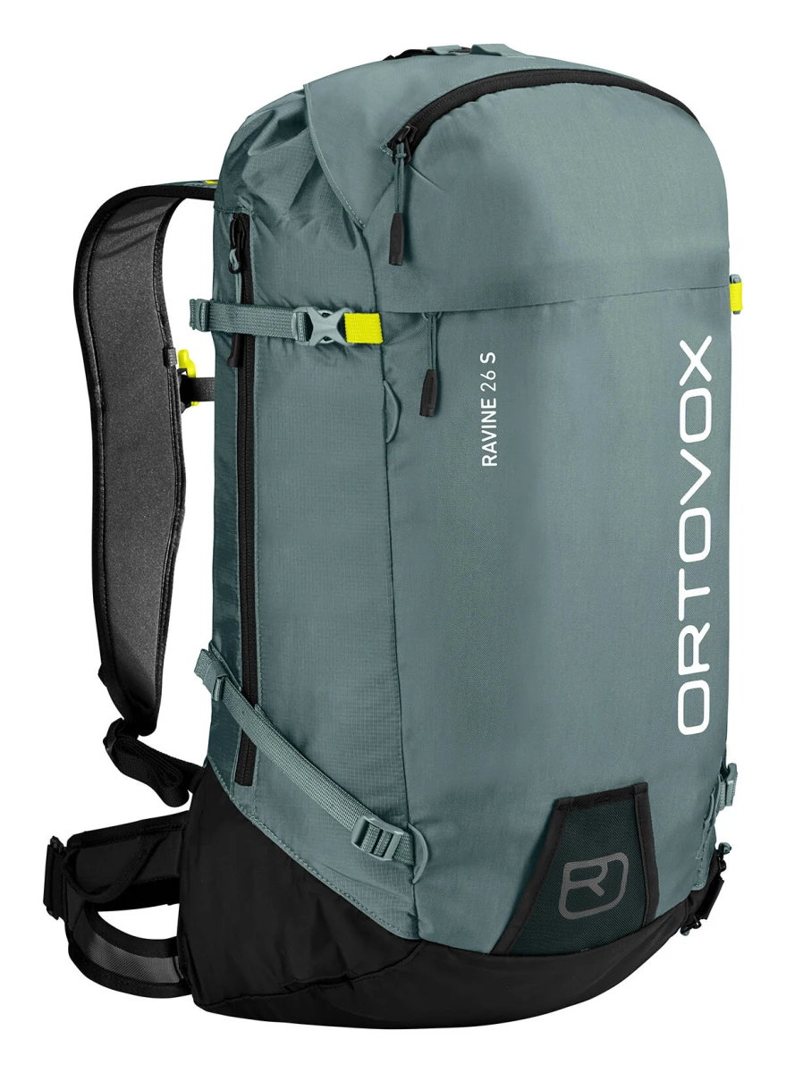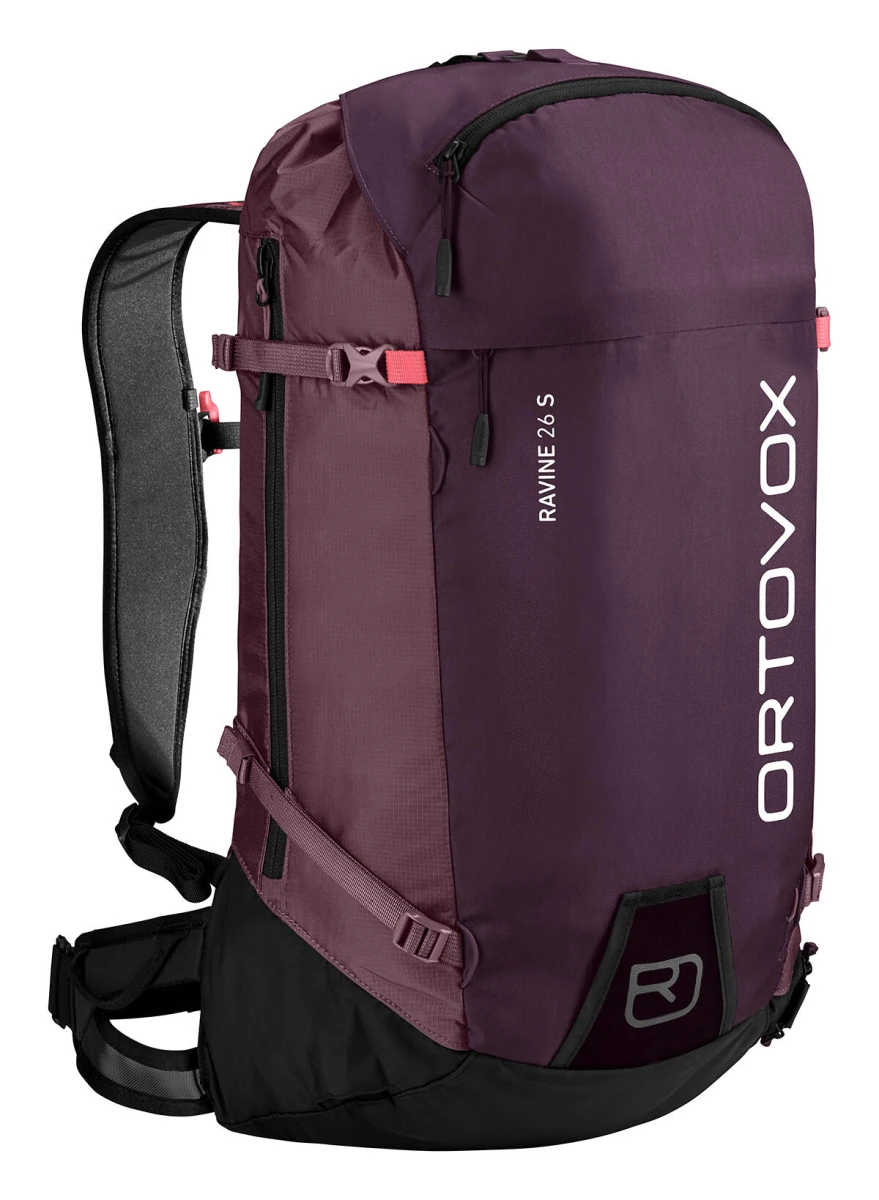 Ortovox Ravine 26 S: velmi lehký dámský freeridový batoh o objemu 26 litrů. Má pohodlný zádový systém Full-Contact-Light, který rovnoměrně rozloží zátěž na záda a mezi bederní popruh a ramenní popruhy. Výhodou tohoto batohu je, že důležité položky vybavení lze uložit nebo vyzvednout bez sundání batohu. Lyže připevníte pomocí popruhu s karabinkou a na spodku batohu je snadno dostupná kapsa na mačky, stoupací pásy a další.