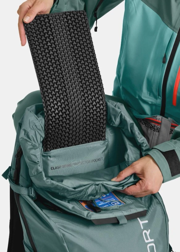 Uvnitř batohu je samostatná kapsa do které lze vložit certifikovaný chránič páteře Clasp Spine Protector (není součástí batohu). Speciální přihrádka na lavinovou výbavu: sněhovou lopatu a lavinovou sondu.