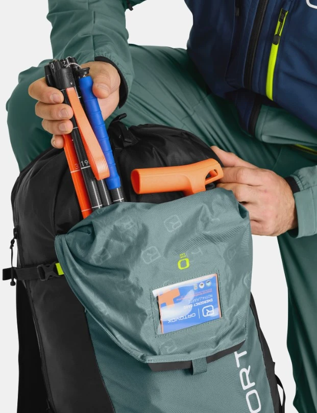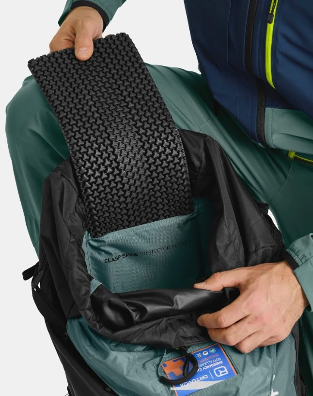 Uvnitř batohu je samostatná kapsa do které lze vložit certifikovaný chránič páteře Clasp Spine Protector (není součástí batohu). Speciální přihrádka na lavinovou výbavu: sněhovou lopatu a lavinovou sondu.