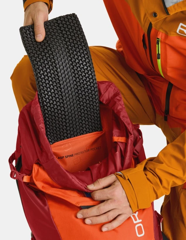 Uvnitř batohu je samostatná kapsa do které lze vložit certifikovaný chránič páteře Clasp Spine Protector (není součástí batohu). Speciální přihrádka na lavinovou výbavu: sněhovou lopatu a lavinovou sondu.