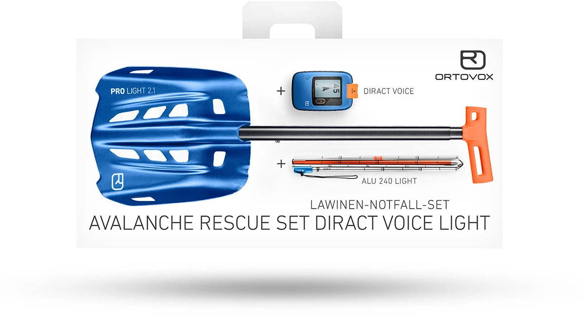 Ortovox Avalanche Rescue Set Diract Voice Light je lavinový set zaměřený na nízkou hmotnost, kompaktnost a maximálně jednoduché použití. Obsahuje lavinový vyhledávač Ortovox Diract Voice, lehkou lopatu Ortovox Shovel Pro Light a lavinovou sondu Ortovox Alu 240 Light.