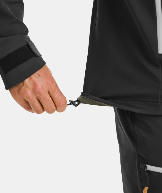 Má dvě velké kapsy přístupné i s batohem, nastavitelnou kapuci Adjustable Hood, lemy rukávu na suchý zip, stahování spodního lemu.