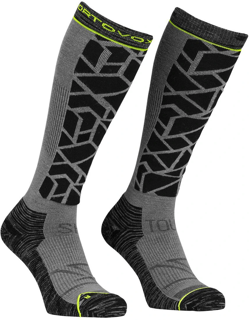 Ortovox Ski Tour Compression Long Socks M – jsou pánské kompresní podkolenky s plochými švy a polstrováním v oblasti paty a špičky, jsou ideální na dlouhé zimní dny na skialpech. Kompresní účinek ponožek je rovnoměrně rozložen od kotníku po lýtko. Ponožky tak napomáhají správnému prokrvení lýtek a chrání je před brzkou únavou.