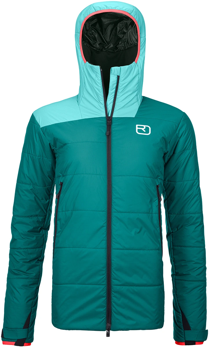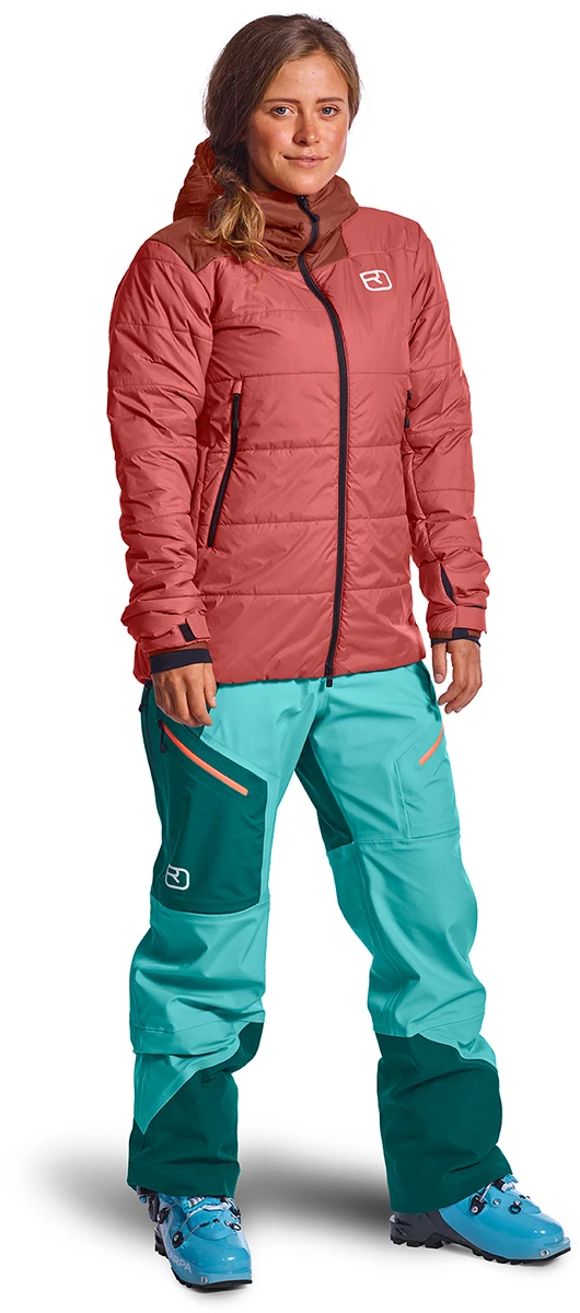Střih je volný aby umožnil širokou škálu pohybů během sjezdu. Ortovox Zinal Jacket W je nejteplejší freeridová bunda z kolekce Ortovox.