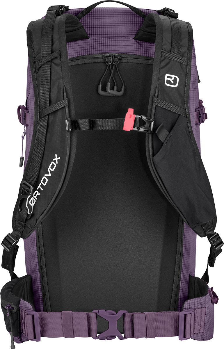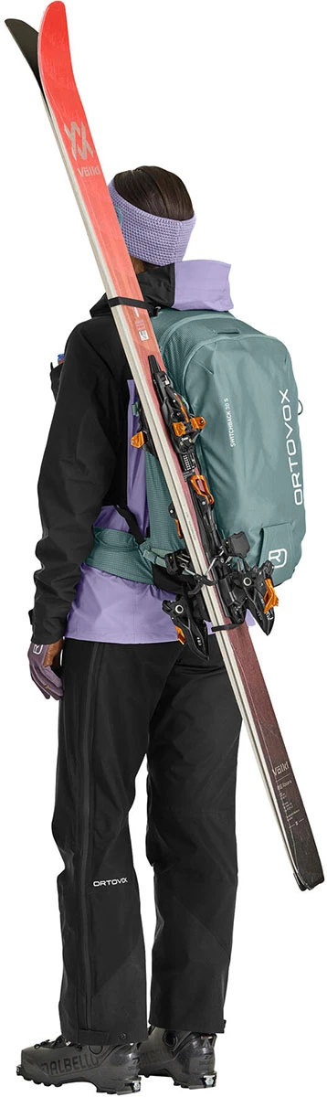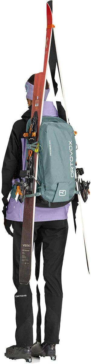 Ortovox Switchback 30 S: skialpinistický batoh přizpůsobený pro lidi s kratší délkou zad 36 - 44 cm. Je unikátní svojí nízkou hmotností, která je 1000 g. Má plnohodnotný zádový systém, do kterého se nezachytává sníh. Je použita 3D pěna, která dobře rozkládá váhu po zádech.