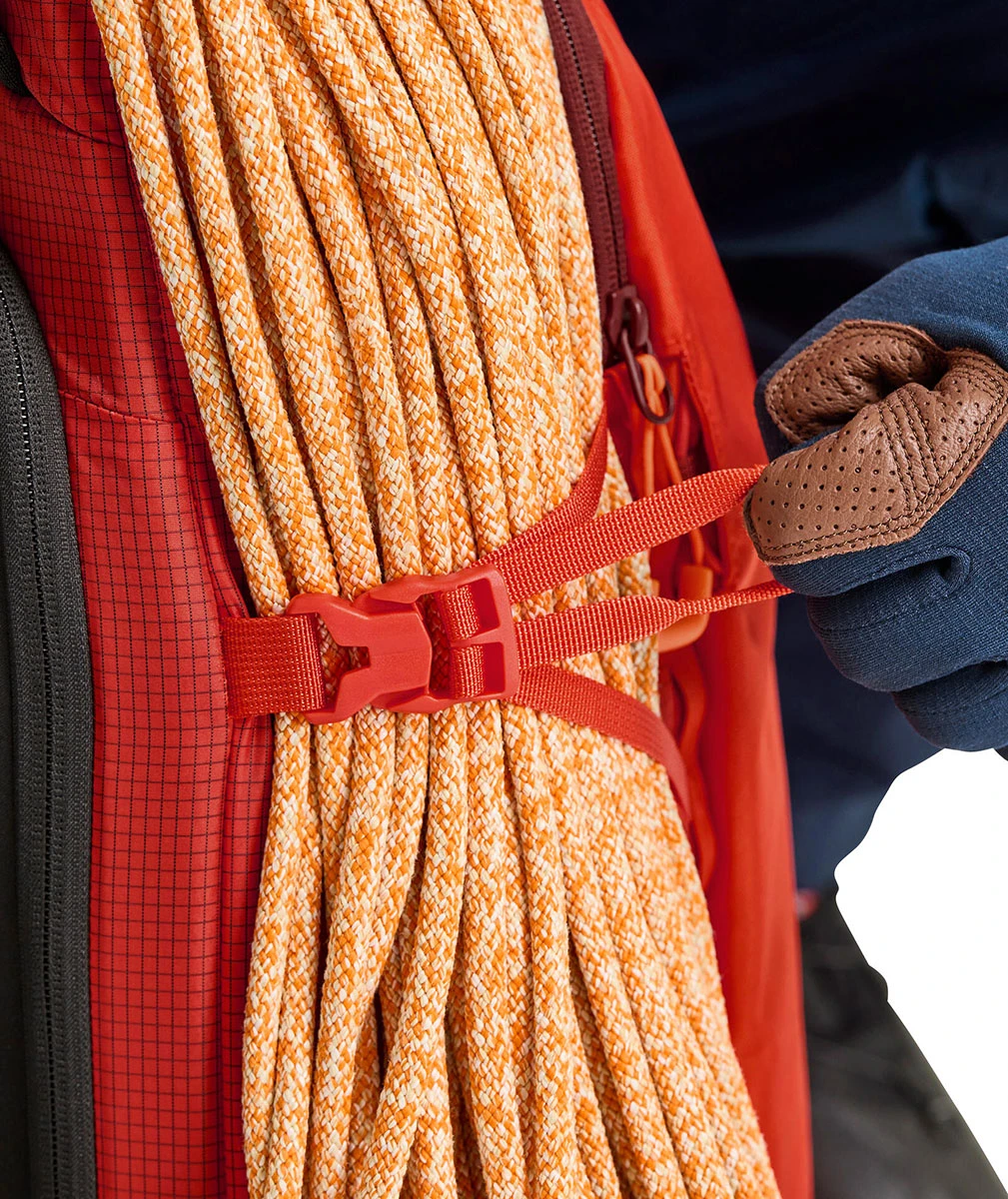 Vstup do hlavní komory je pomocí dvoucestného zipu, který je podél ¾ zad. Batoh tak lze položit předkem do sněhu a otevřít. Vstup do hlavní komory ještě přes horní vstup.