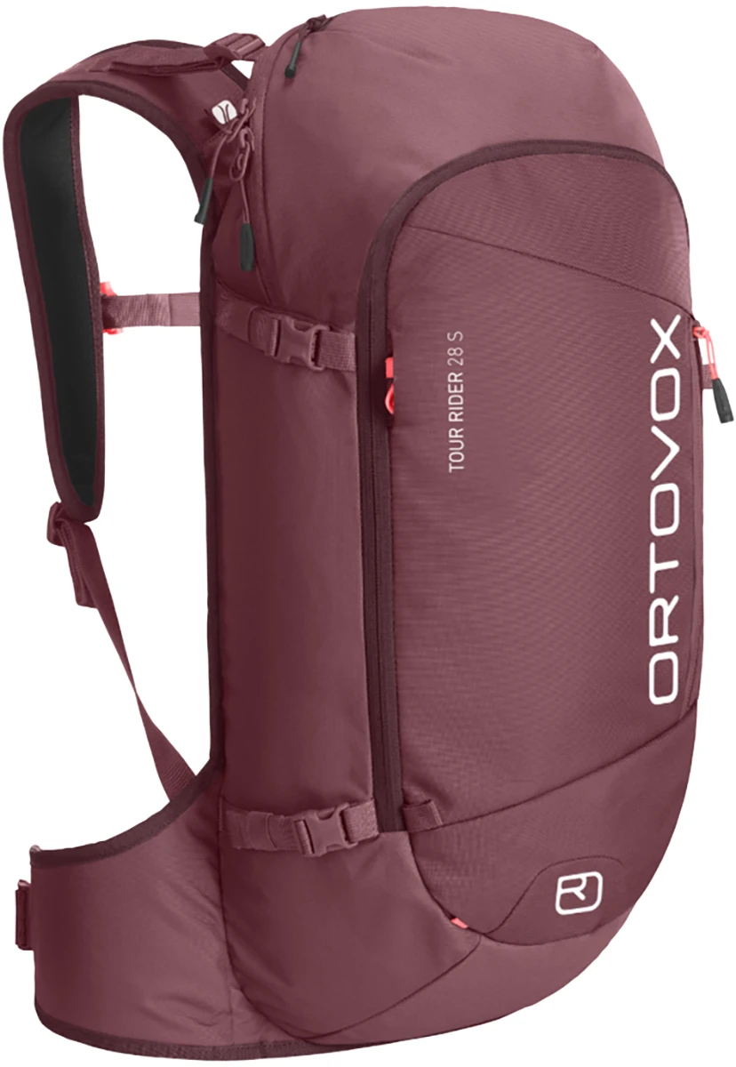 Ortovox Tour Rider 28 S: je skialpinistický batoh s objemem 28 litrů a velikostí S pro menší postavy. Batoh je určen pro osoby s délkou zad 36-44 cm. Batoh je maximálně odlehčený hodí se pro skialpinistické a freeridové túry. Váží pouhých 950 g. Je určený na celodenní túry. Má zádový systém tvořený softshellem, který se nEzanáší sněhem. Umožňuje odvětrání zad.