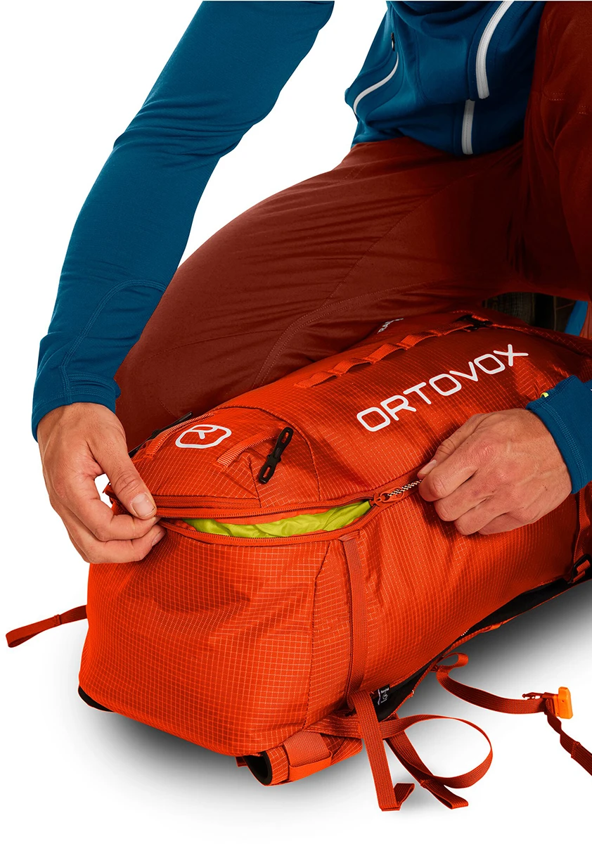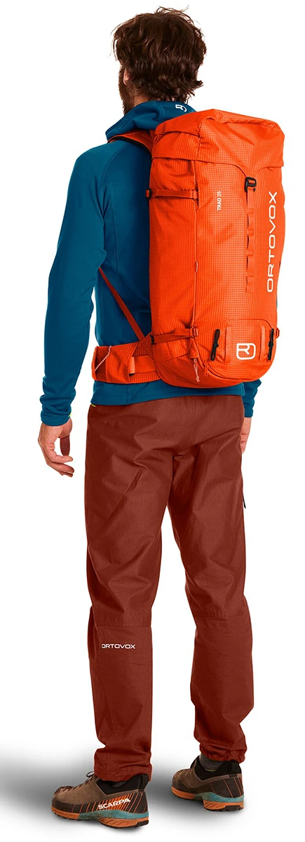 Ortovox Trad 35: je díky plnohodnotnému zádovému systému velmi komfortní, ale zároveň je vyrobený se zajímavou hmotností pod jeden kilogram. Zádový systém má hliníkovou kostru, kterou můžete vyndat (např. při přepravě).