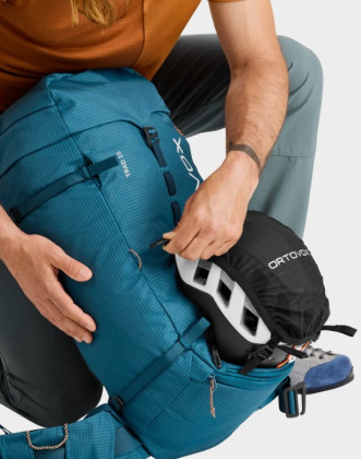 Ortovox Trad 35 je ideální volbou pro horolezce, kteří hledají rovnováhu mezi odolností a hmotností. Je dostatečně velký na to, aby pojal lano, jistící pomůcky, helmu i náhradní oblečení, ale zároveň se dokáže „smrsknout“ na minimalistický lezecký speciál. Díky reflexnímu vnitřku ve svítivé barvě navíc v batohu najdete všechno vybavení rychle i za šera nebo v nepříznivých podmínkách.