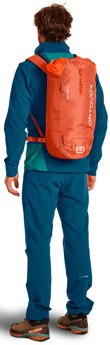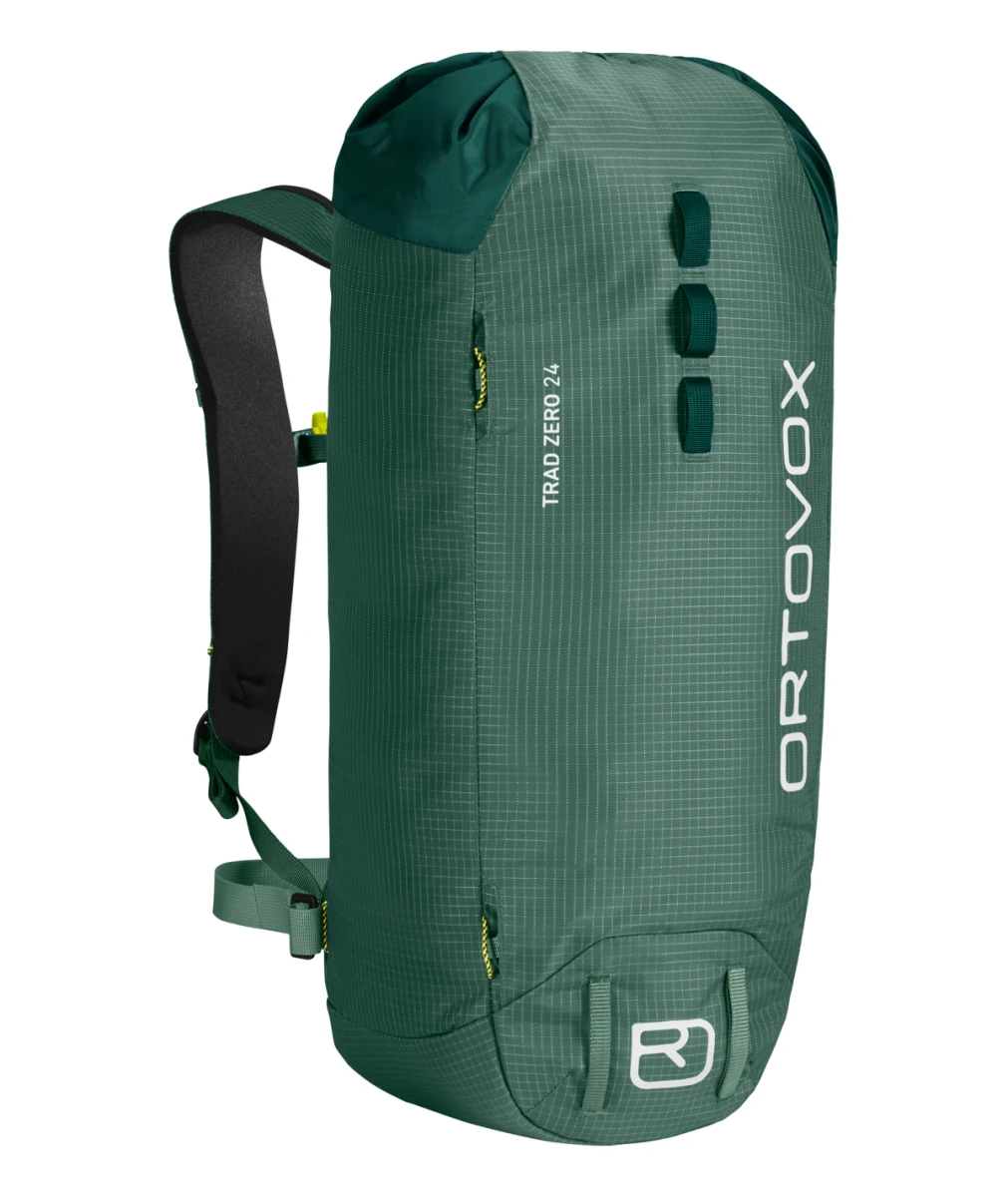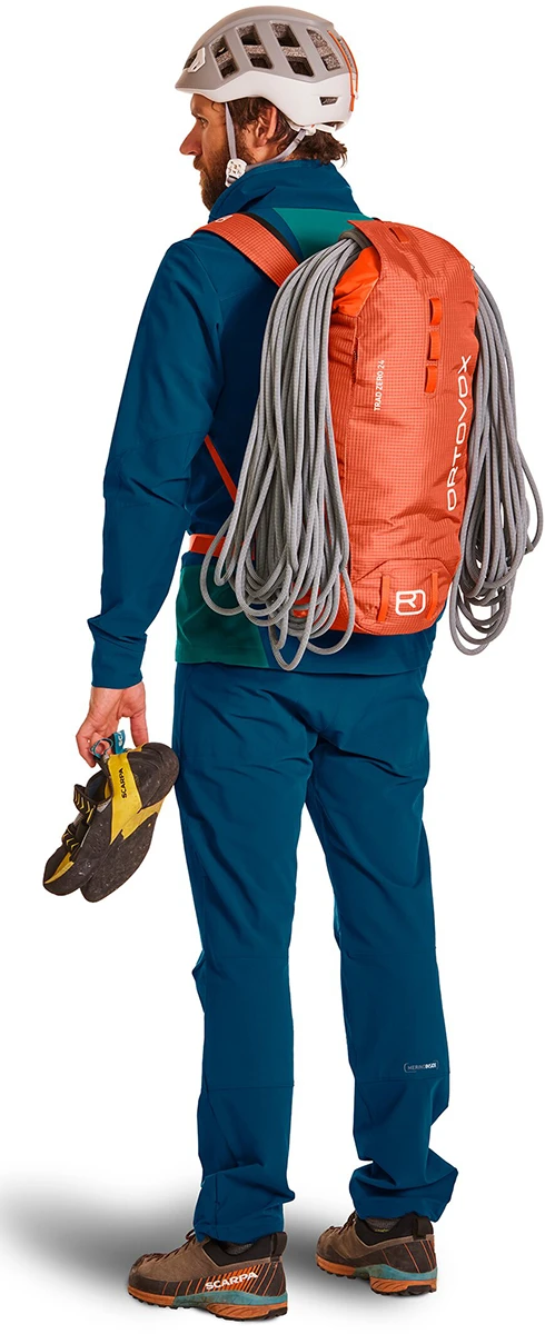 Ortovox Trad Zero 24: je vyráběný pro vícedélkové lezení, kdy hledáte minimalistický batoh, který by vás nijak nelimitoval. A to je právě tento bágl, minimální váha 490 g. Nic zbytečného, ořezaný na absolutní minimum.