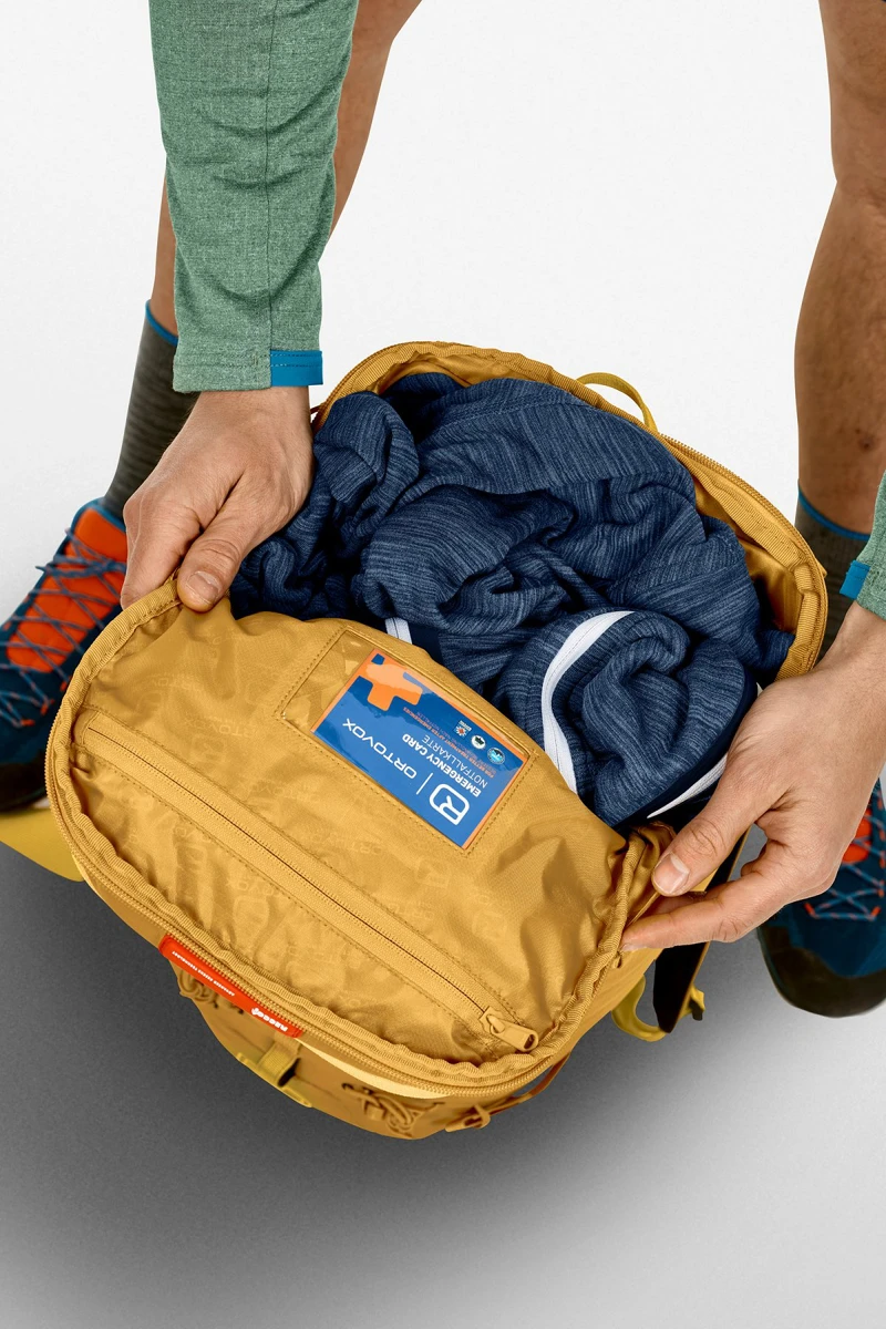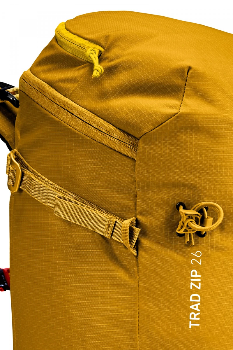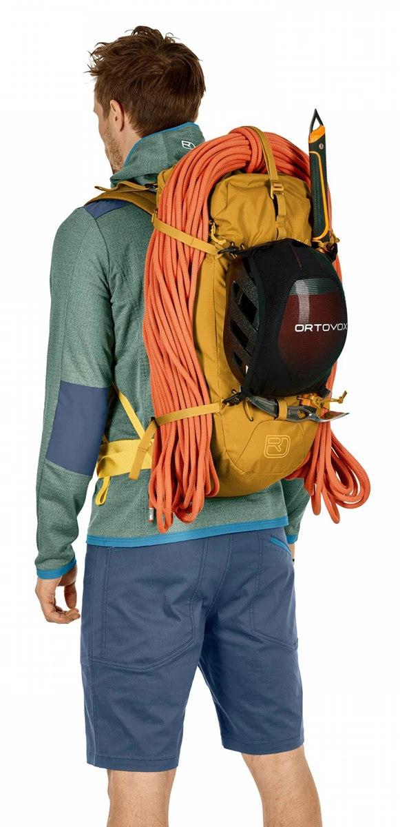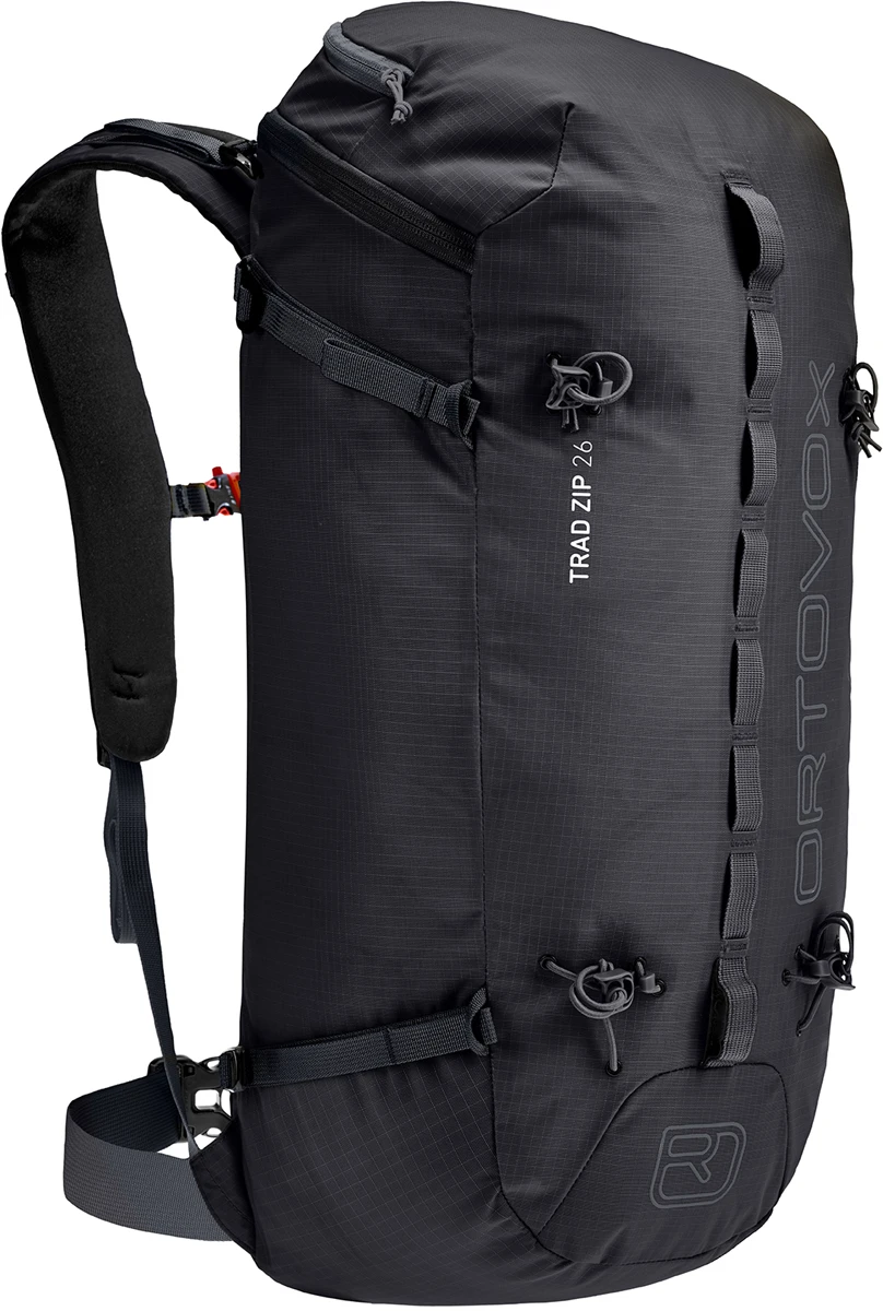 Ortovox Trad Zip 26: je určený pro alpinismus a horolezectví. Využijete ho pro lezení ve velkých stěnách v létě i v zimě. Má jednoduchý zádový systém vyztužený hliníkovou konstrukcí, ta jde vytáhnout. Zádový systém je plnohodnotný a velmi pohodlný. Díky vytvarování zádového systému padne dobře k zádům a zaručuje vysoký komfort a volnost pohybu. Má bederní pás a hrudní pás s píšťalkou.