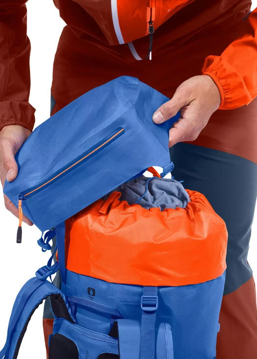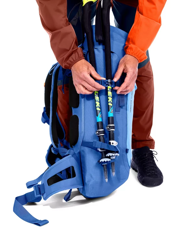 Poskytuje vám upevnění trekových holí, případně přilby. Má také přídavnou kapsu a kapsu na mapu. Ortovox Traverse 30 Dry je voděodolný (50 000 mm), nepotřebujete u něj používat pláštěnku. Má švy podlepené.
