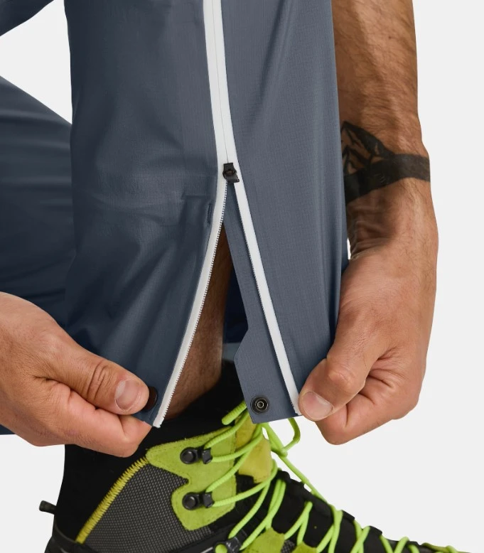 Jsou určeny pro horské aktivity převážně v období od jara do podzimu, kdy je využijete hlavně jako převlečné pánské nepromokavé kalhoty. Jsou vyrobené z třívrstvého laminátu Dermizax NX